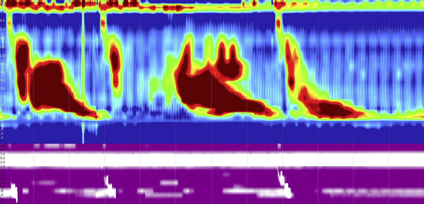 Her photograph shows a high-resolution oesophageal manometry: hypertensive oesophageal spasm.